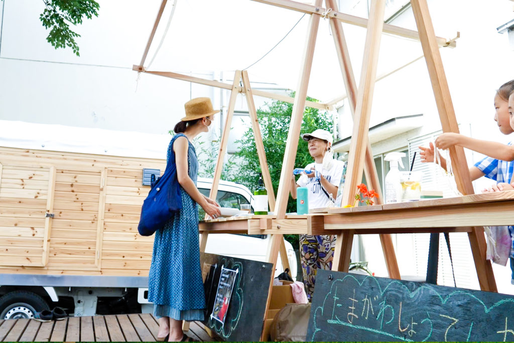 誰でも簡単につくれる組み立て式ヤタイなので、「コマエヤタイ」があれば街の公園や空き地などもお店にさまがわり。